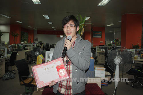 市場部的銷售精英們在領(lǐng)獎環(huán)節(jié)暢談各自的成功經(jīng)驗和心得,贏得大家一致好評。