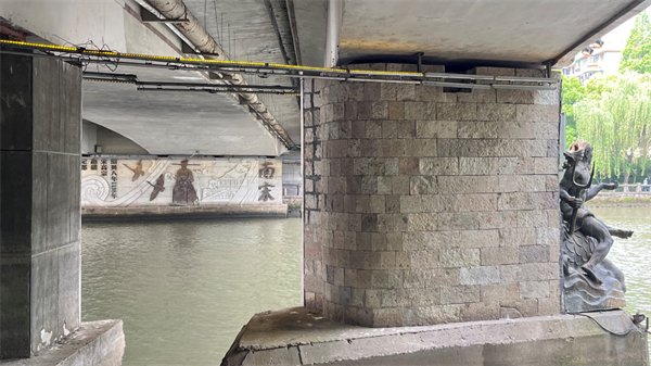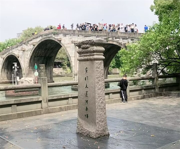 京杭大運(yùn)河最南端位于杭州拱宸橋,并在橋邊立碑,該橋是一座三孔的拱橋,初建于明崇禎四年(1631年),已有三百多年的歷史?,F(xiàn)存橋?yàn)榍蹇滴鯐r(shí)重建,全長(zhǎng)138米,寬6.6米。石砌橋墩逐層收分,橋面兩側(cè)作石質(zhì)霸王靠,氣勢(shì)雄偉,下面各有兩個(gè)防撞墩,防止運(yùn)輸船只撞到橋墩。該橋位于杭州市運(yùn)河文化廣場(chǎng),它坐落在杭州市拱墅區(qū)橋弄街,橫跨于古運(yùn)河之上,是杭州古運(yùn)河終點(diǎn)的標(biāo)志。