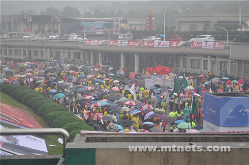 11月1日,天公不作美,下起了小雨,最低氣溫也只有12攝氏度,還有3級大風,寒意逼人,但這雨絲毫沒有影響到馬拉松跑友們高漲的熱情。上午8時,2015杭州馬拉松在杭州黃龍體育中心廣場鳴槍開跑。