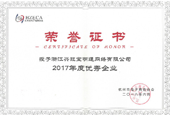 興旺寶明通榮膺“2017年度優(yōu)秀企業(yè)”