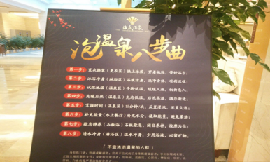 午休娛樂中,時間不知不覺就到了晚上,小伙伴們晚餐之后,就開始了此次養(yǎng)生“重頭戲”——泡溫泉。我聽過巴金的愛情三部曲《霧》、《雨》、《電》,激流三部曲《家》《春》《秋》,還有老舍的三部曲《茶館》、《龍須溝》、《四世同堂》。沒想到,泡溫泉還有“八步曲”,參考如圖。