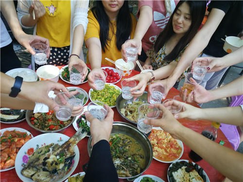 體力活動結(jié)束,該是補充能量的時候了!小伙伴各展所長,洗菜、切菜、燒火、烹飪……在大家的齊心協(xié)作下,一道道色香味俱全的美食被端上桌。據(jù)說路過的行人都被饞哭了!